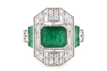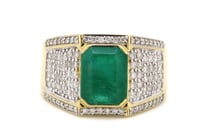14CT YELLOW GOLD ZAMBIAN EMERALD AND DIAMOND ART...