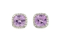 14K WHITE GOLD, KUNZITE AND DIAMOND, HALO STUD...