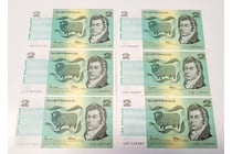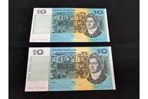 TWO AUSTRALIAN TEN DOLLAR CONSECUTIVE BANK NOTES,...