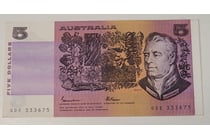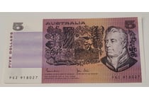 AUSTRALIAN $5 SIGNED BANKNOTE -...