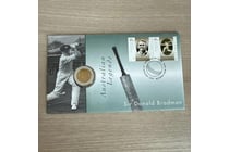 BRADMAN 5 DOLLAR BI METAL COIN ON CARD OF ISSUE...