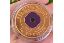 LEST WE FORGET PURPLE POPPY 1 OZ COPPER BULLION...