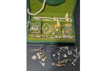 COSTUME JEWELLERY IN GREEN VELVET JEWELLERY BOX,...