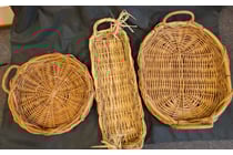 THREE WOVEN CANE TRAY BASKETS - LONG, MEDIUM AND...