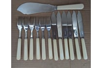 VINTAGE SILVER FISH KNIVES AND FORKS BONE HANDLE...