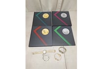 4 x variety of watches, 4 x collector coin books,...