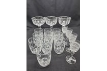 SET OF PATTERNED GLASSWARE, INCLUDING PLATES,...