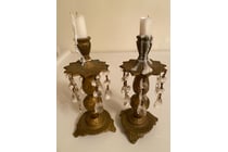 PAIR OF BRASS CANDLE STICK HOLDERS WITH 5 GLASS...
