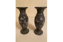 PAIR OF GRANITE VASES ETCHED WITH JAPANESE...