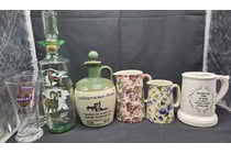 COLLECTION OF GLASSWARES, INCLUDING THEMED PLATE,...