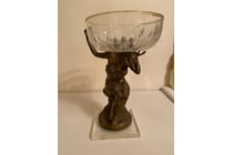 BRASS CANDLE SNUFFER WITH JEWEL CUT BLUE GLASS...