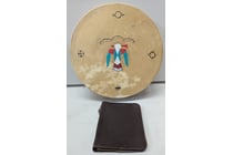 NATIVE AMERICAN DRUM WITH LEATHER ORGANIZER AND...