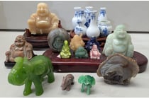 ASIAN JADE AND STONE CARVED BUDDHA FIGURINES...