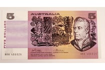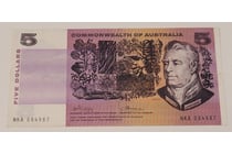 AUSTRALIAN $5 SIGNED BANKNOTE -...