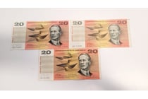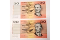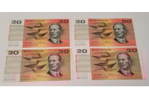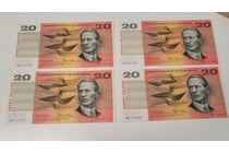 FOUR AUSTRALIAN TWENTY DOLLAR CONSECUTIVE BANK...