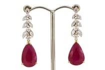 14K YELLOW GOLD, RUBY AND DIAMOND, DROP EARRINGS....