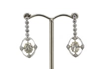 14K WHITE GOLD AND DIAMOND, DROP EARRINGS....