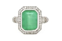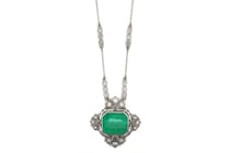14K WHITE GOLD, 7.93CT COLOMBIAN EMERALD AND...
