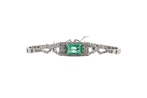 14K WHITE GOLD, AQUAMARINE AND DIAMOND, ART DECO...