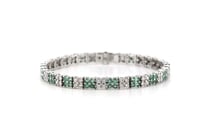 14K WHITE GOLD, EMERALD AND DIAMOND, CHECKERED...