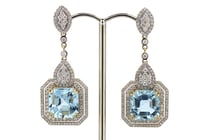 14K WHITE GOLD, AQUAMARINE AND DIAMOND, HALO DROP...