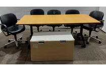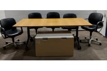 Boardroom table, woodlike,centre powerpoint...