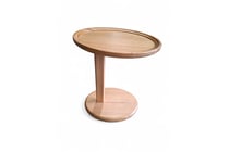 RRP $390 Side table oval shaped, natural timber...