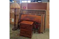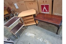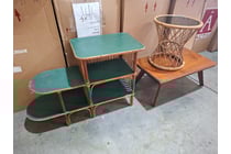 1 x Bamboo style book shelve, 1 x rattan/glass...