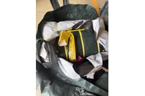 Heavy-duty tarp fabric, cut sections. Suitable...
