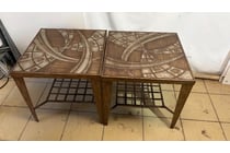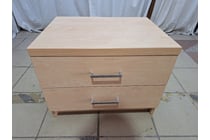 Bed side tables, timber, one cupboard on caster...