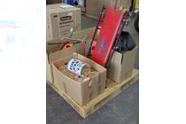 Tools pallet, includes 5L fuel cans, assorted...