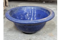 Large blue ceramic bowl featuring a deep, rounded...