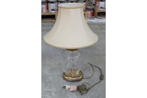 Classic brass table lamp featuring a cut crystal...