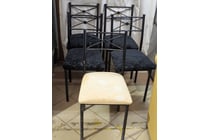 six dining chairs, black leather style SOLD AS...