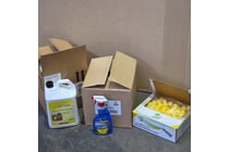 Hand cleaning supplies, large box containing...
