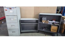 Office furniture, filing cabinet and 2 shelves...