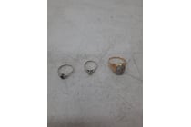 One silver coloured ring with black stone, one...