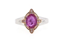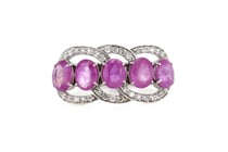 14K WHITE GOLD, PINK SAPPHIRE AND DIAMOND, FLORAL...