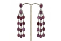 14K YELLOW GOLD, RUBY AND DIAMOND, ORNATE DROP...