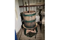 Vintage wooden wine press with cast iron and...