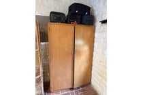 Assortment of wooden wardrobe, 4 suitcases,...
