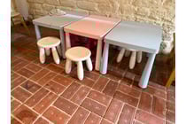 3 Kids tables and 5 chairs, signs of wear...