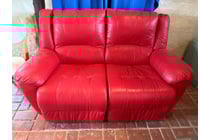 Striking red leather reclining home theatre...