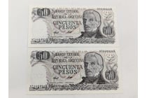 TWO ARGENTINA 50 PESOS, 1987 NOTES....