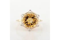 9CT YELLOW GOLD NATURAL CITRINE & DIAMOND RING...