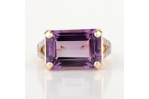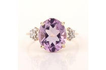 9CT YELLOW GOLD NATURAL AMETHYST & DIAMOND RING...