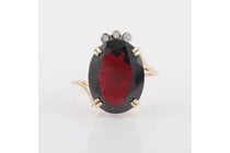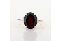 9CT YELLOW GOLD NATURAL GARNET & DIAMOND RING...