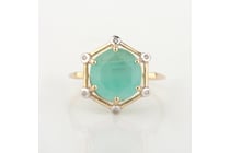 9CT YELLOW GOLD NATURAL EMERALD & DIAMOND RING...