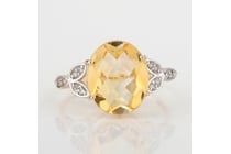 WHITE GOLD NATURAL CITRINE & DIAMOND RING...
