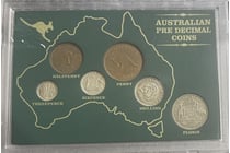 AUSTRALIA PRE DECIMAL COINS SET IN GREEN PERPEX...